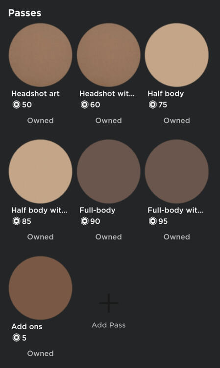 Add ons - 5 robux (price may rise depending on the complexity of the art work)